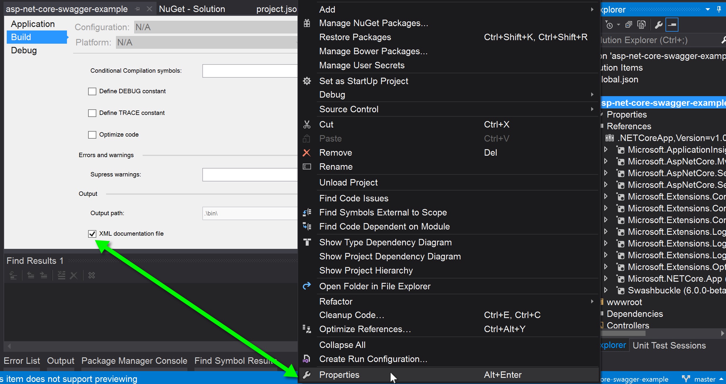 Install Swashbuckle for ASP .NET CORE via Nuget.