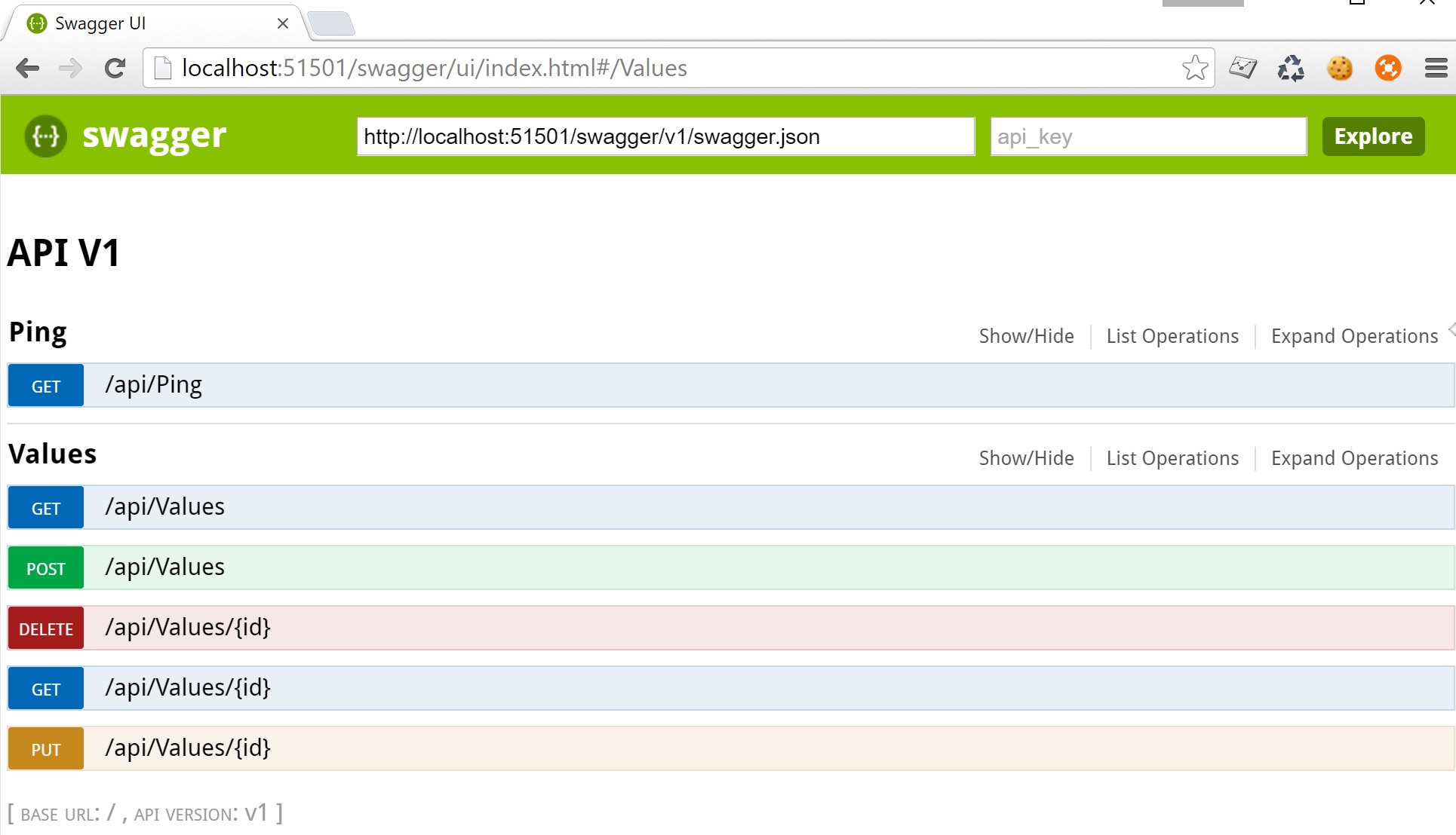 Now you can access the raw Swagger json via the following url. In my case I'm running my site using port 51501 so please adjust the port number in the url according to your local environment.